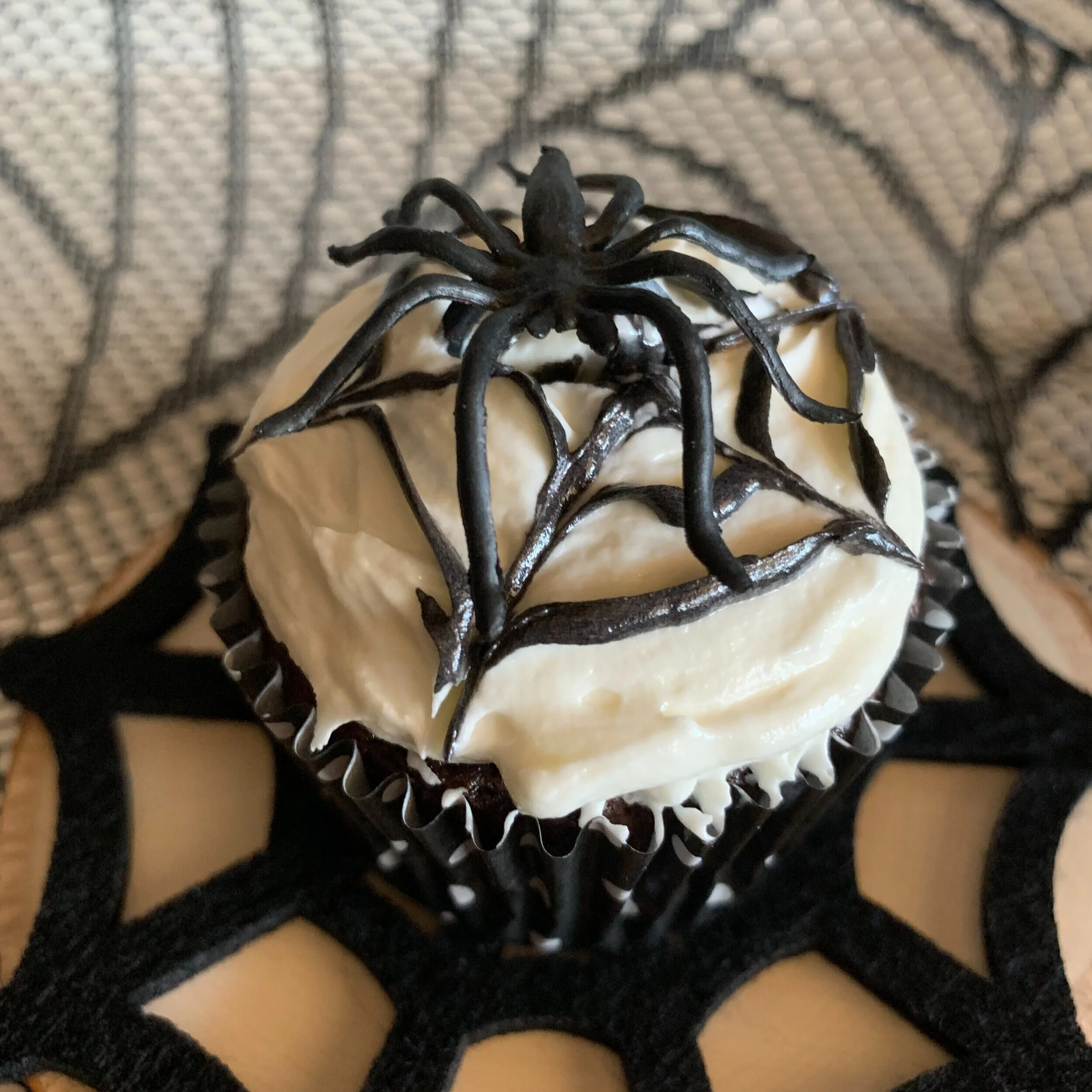 Salted Caramel Cupcake with Chocolate Web and Plastic Spider